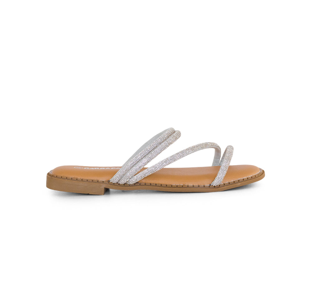 111009 Garrapata Sandalia en estilo slip on, con glitter decorativo en cintas. Ideales para los días de playa y dar un toque alegre al caminar.