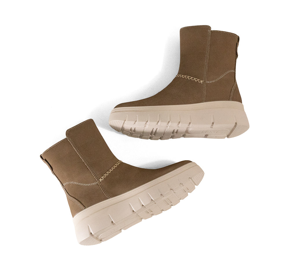 137804 Flexi Línea de calzado tipo botín con acabado en piel. Diseño contemporáneo con cierre lateral, plataforma corrida de 5cm, ideal para tu día a día.