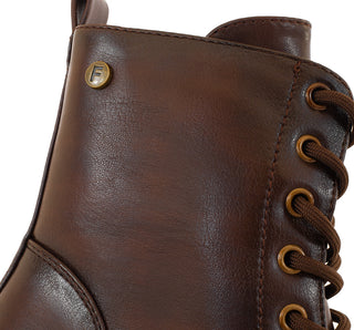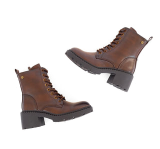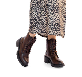 1510301 EFE Línea de calzado tipo combat boot de acabado sintético. Diseño casual y moderno con agujetas, tacón medio y suela dentada que brinda máxima estabilidad en cada paso.