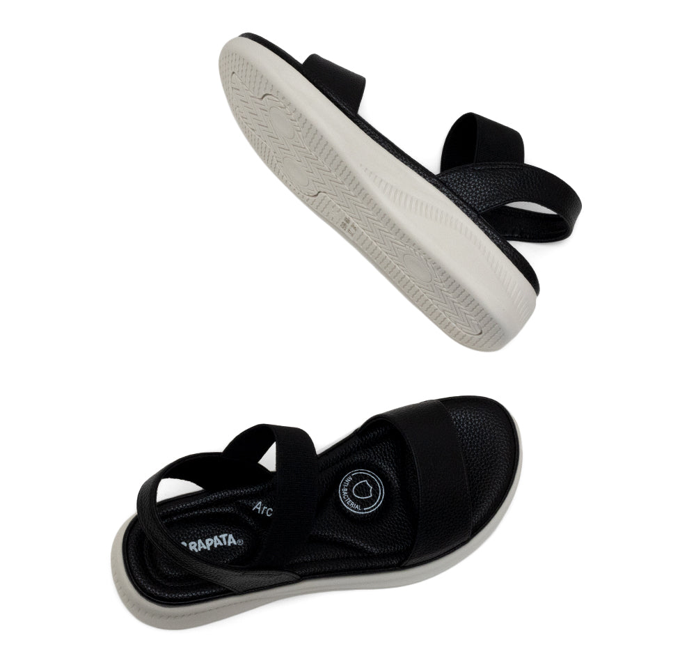 22817-7 Garrapata Línea de calzado tipo sandalia de acabado sintético. Estas sandalias cuentan con cintas elásticas que se ajustan perfectamente al pie sin necesidad de broches ni hebillas. Las tiras se adaptan a la forma del pie, brindando una sujeción segura y cómoda durante todo el día.