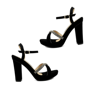 2568 Sary Linea de calzado tipo zapatilla de acabado sintético. Diseño elegante y moderno con pedrería decorativa en cinta cruzada y ajuste mediante hebilla en pulsera del tobillo.