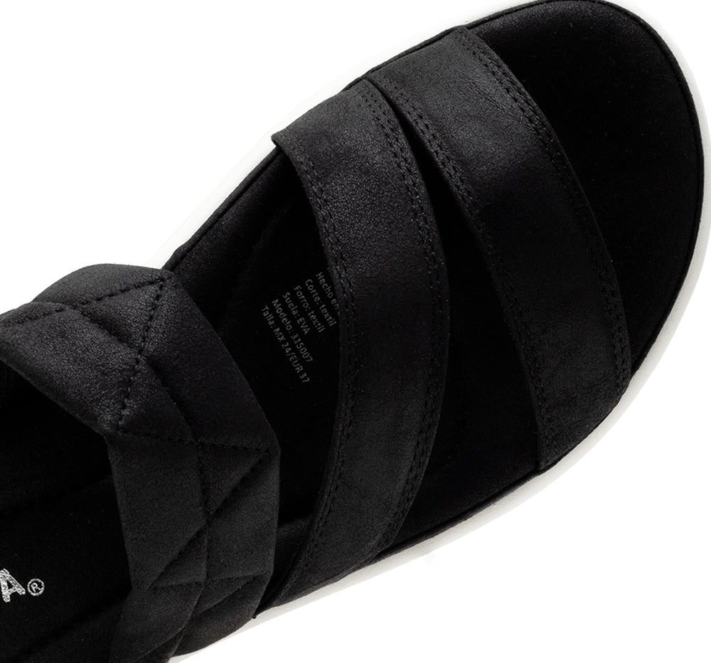 315007 GARRAPATA Línea de calzado tipo sandalia de acabado sintético. Su diseño minimalista, de líneas limpias y tonos clásicos, las convierte en el complemento perfecto para looks relajados pero con estilo.