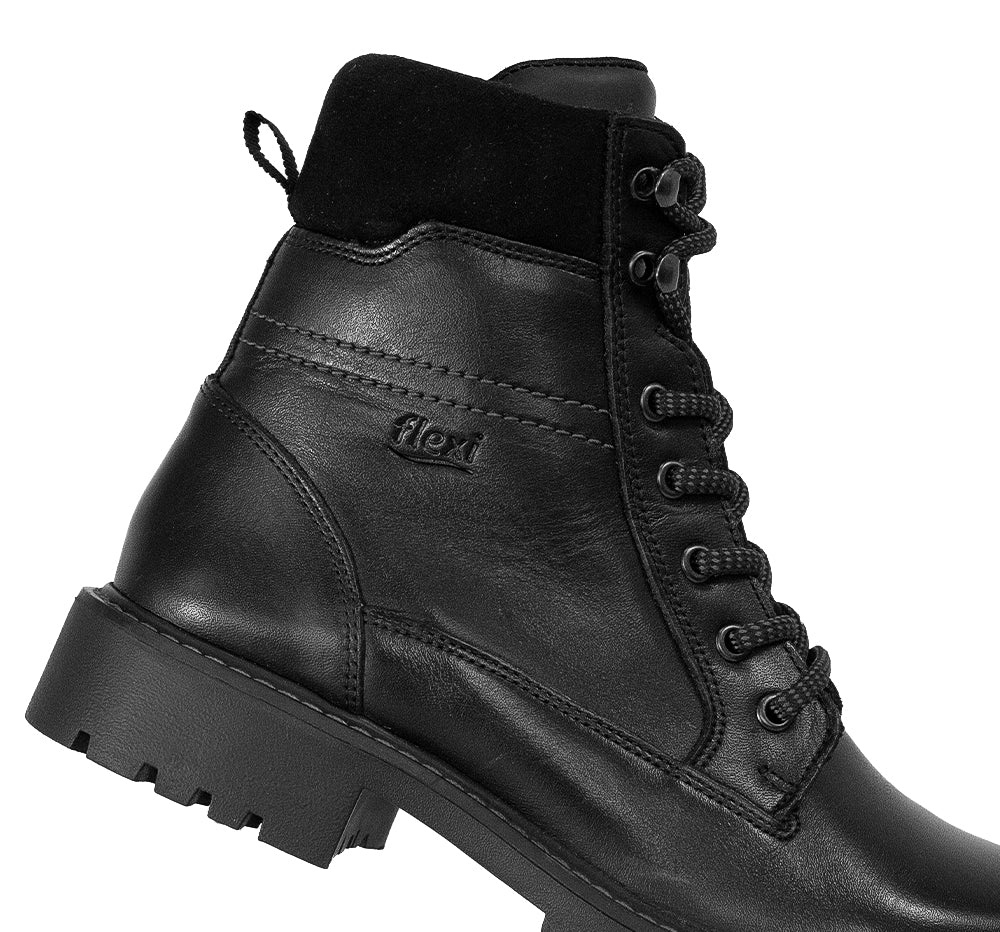 37826 Flexi Línea de calzado tipo bota corta con acabado en piel. Diseño casual y moderno, estilo outdoor de ajuste mediante cordones, con tacón medio y suela dentada que brinda máxima estabilidad en cada paso.