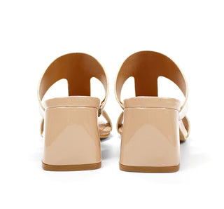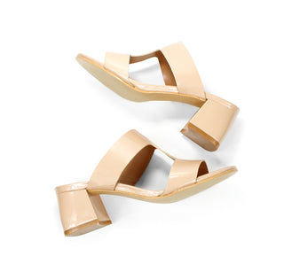 50433 Perugia Sandalia con acabado sintético estilo charol. Diseño cómodo y moderno con tacón medio y superficie descubierta.