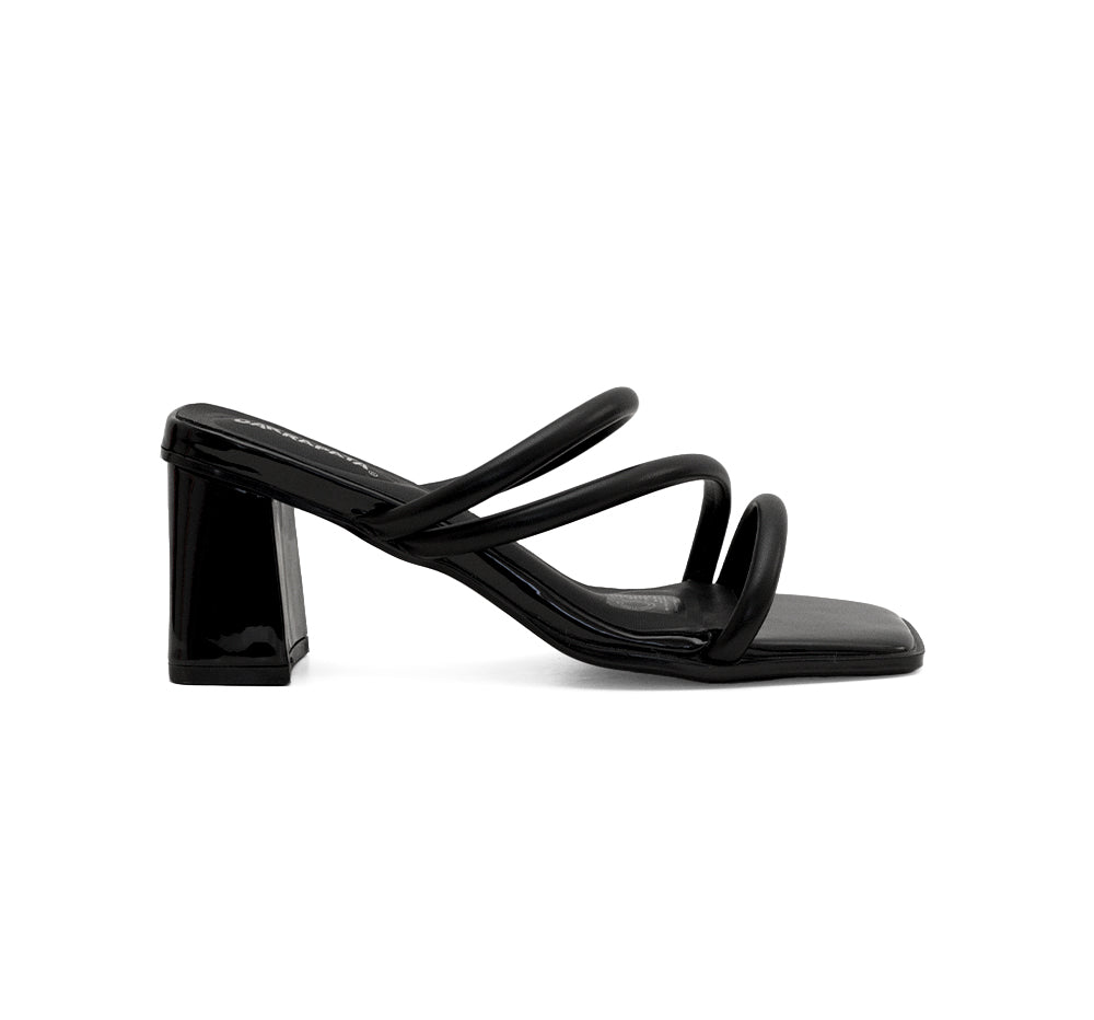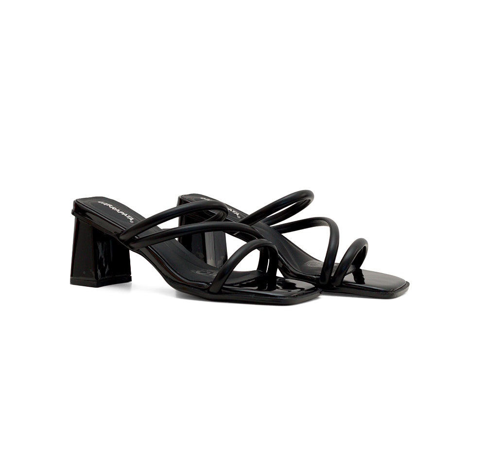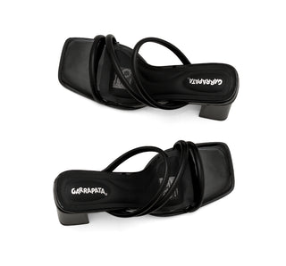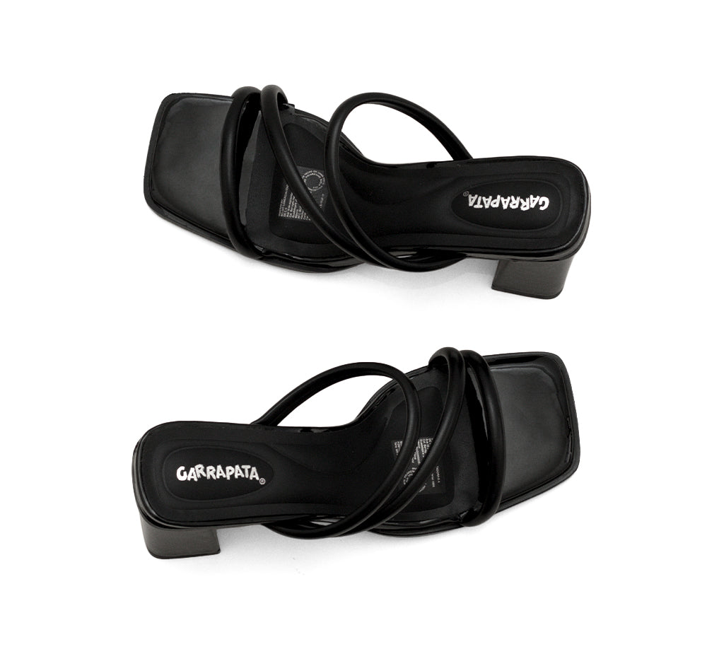 614002 Garrapata Línea de calzado tipo sandalia con tiras al empeine, tacón medio y destalonado.