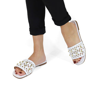 6374.325 VIZZANO Línea de calzado tipo sandalia de piso con acabado sintético. Diseño juvenil, fresco y ligero con cintas trenzadas y pedrería decorativa.
