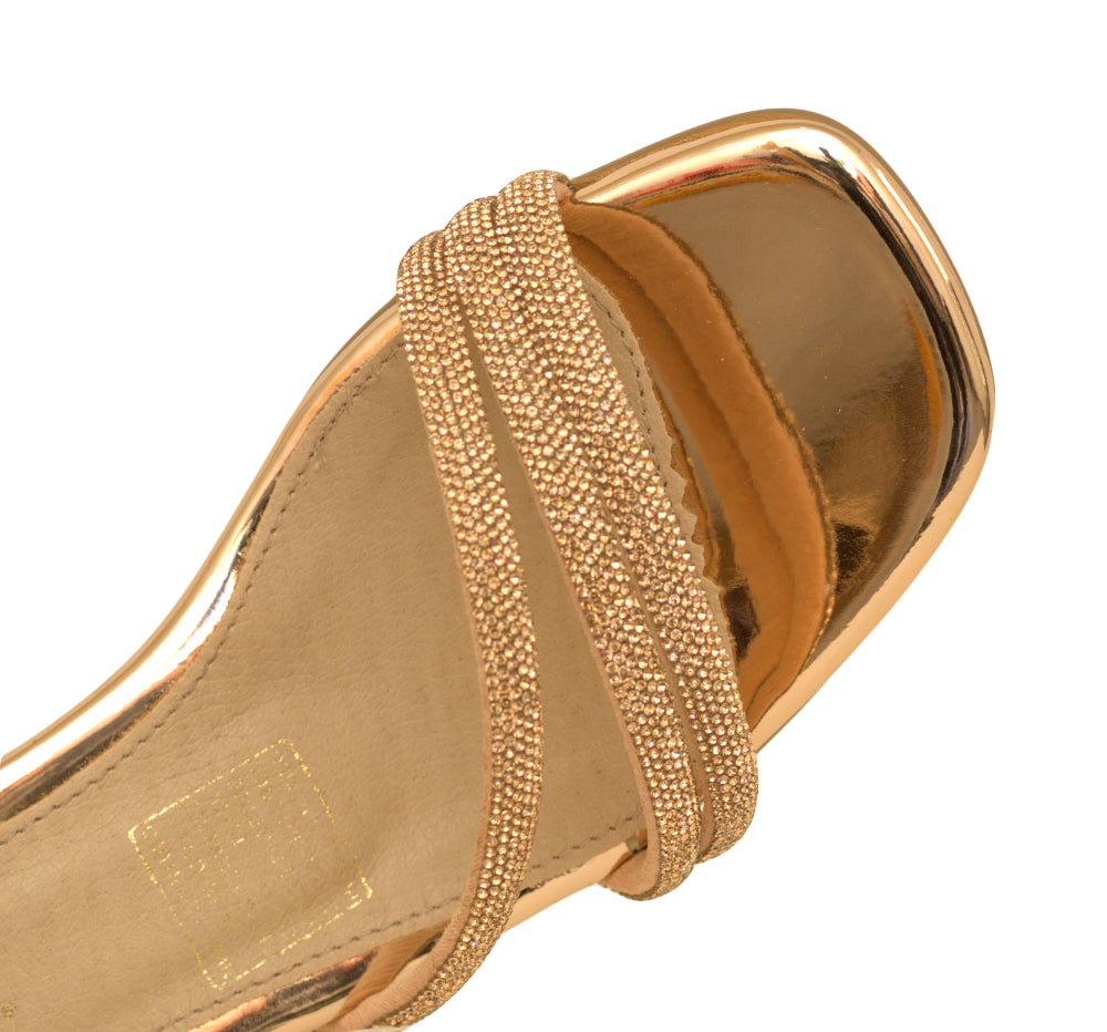 732007 Berlin Línea de calzado tipo sandalia de acabado metalizado. Diseño moderno e innovador con glitter decorativo en tiras del empeine, le dan un toque de elegancia.
