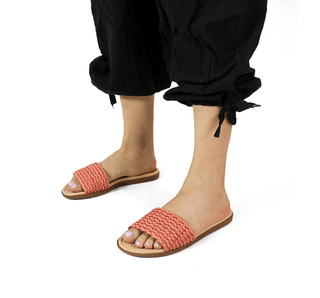 8359.117 Beira Rio Línea de calzado tipo sandalia de piso con acabado sintético. Diseño juvenil con decorado trenzado y ligero tacón para mayor confort.