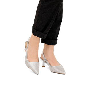 911916 Berlin Línea de calzado tipo zapatilla de acabado sintético. Diseño moderno e innovador con pedrería decorativa, de tacón medio y ajuste mediante hebilla en pulsera de tobillo.
