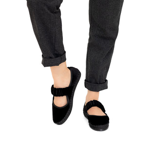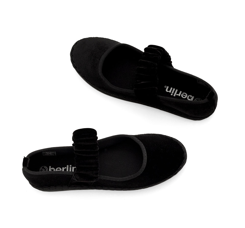 912702 Berlin Linea de calzado tipo flat de acabo sintético. Diseño fresco y cómodo con ajuste de elástico en empeine, acabado de terciopelo y ligero tacón para mayor comodidad.